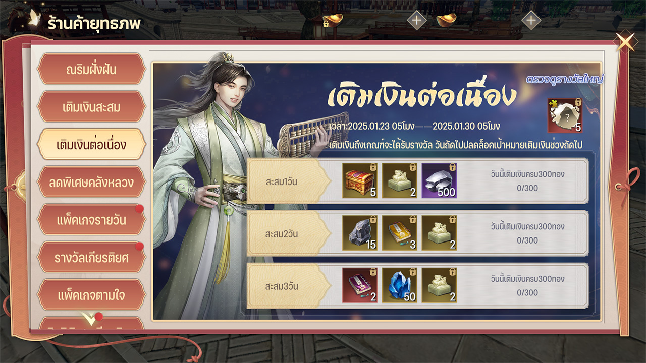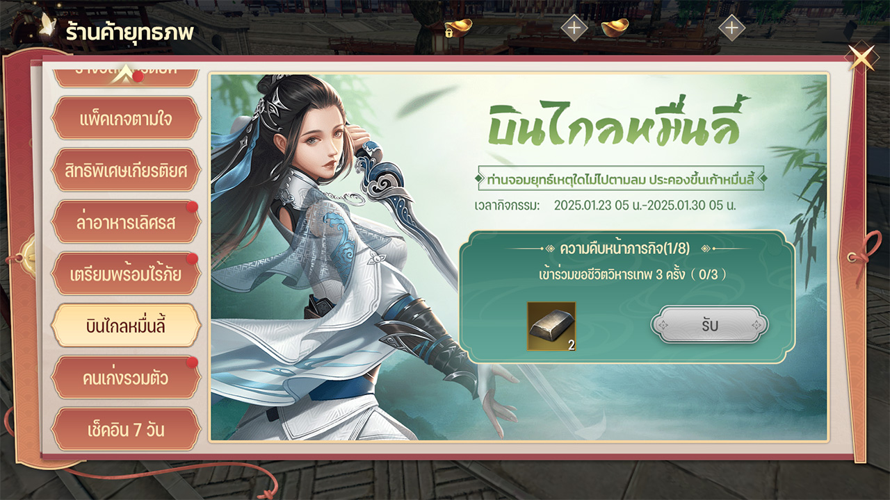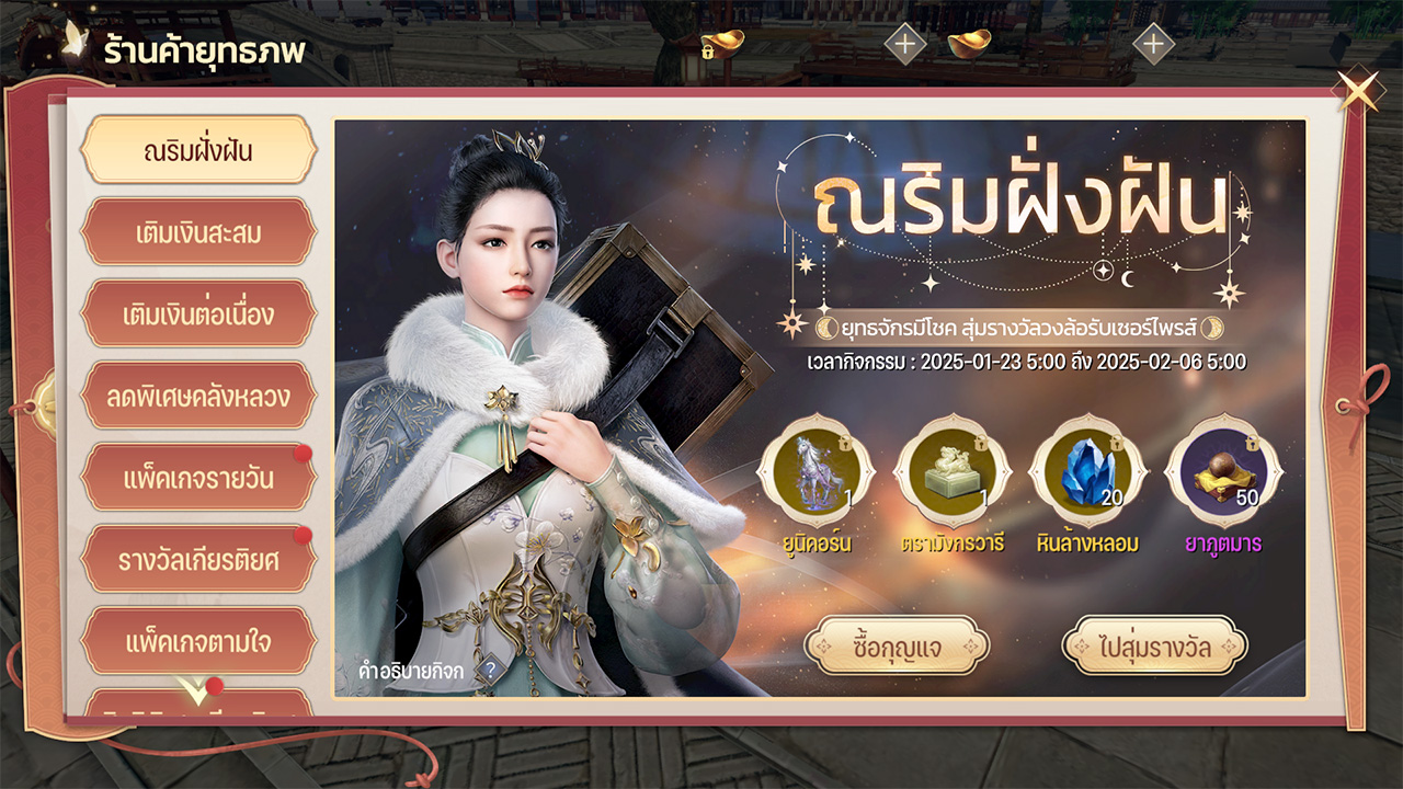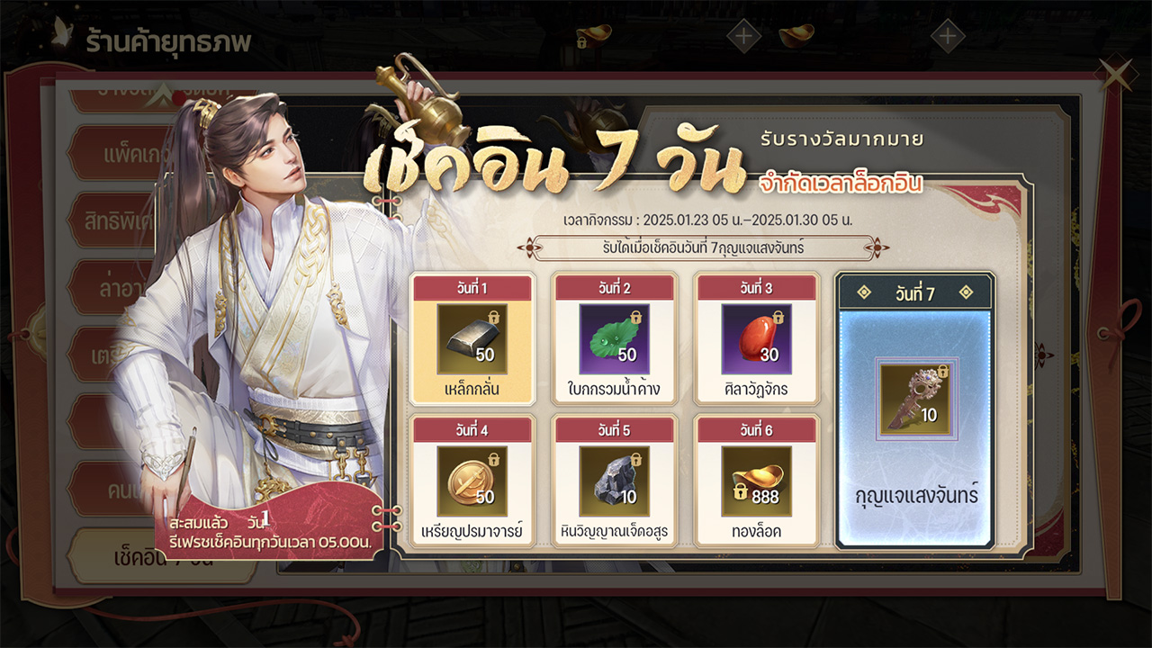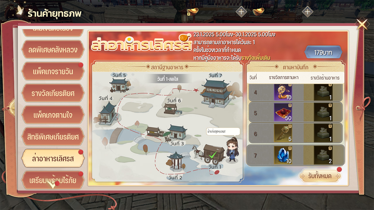 กิจกรรมเช็คอินเข้าเล่นเกมทุกวัน 7 วัน ได้รับไอเทมหลากหลายไม่ซ้ำ และเมื่อซื้อเพิ่ม 179 บาท จะได้รับได้รับไอเทมหลากหลาย ไฮไลท์ไอเทม ตรามังกรวารี