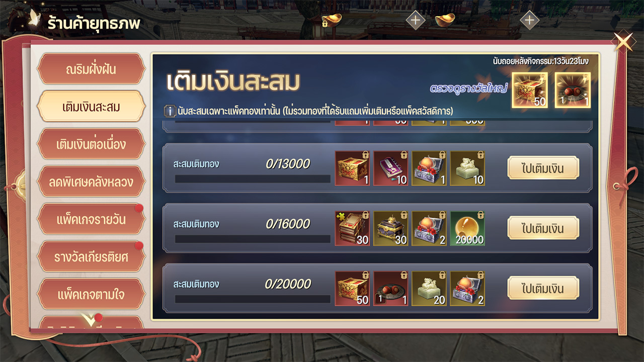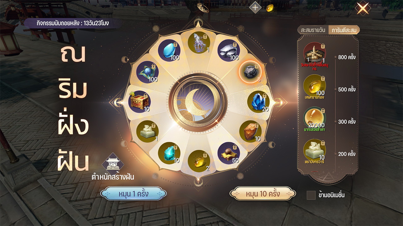 - หมุนสะสมครบ 500 ครั้งในช่วงกิจกรรม ได้รับ เศษทรายทอง 100 ชิ้น