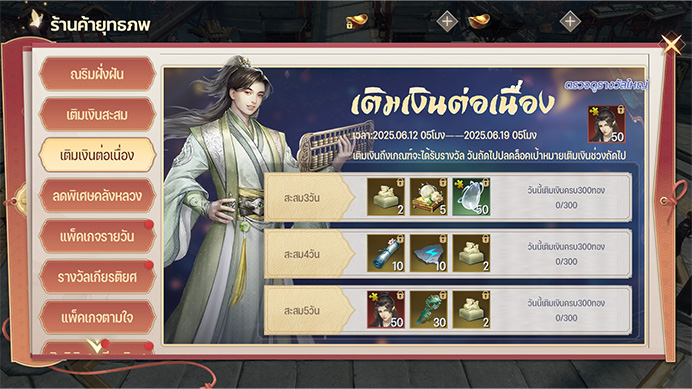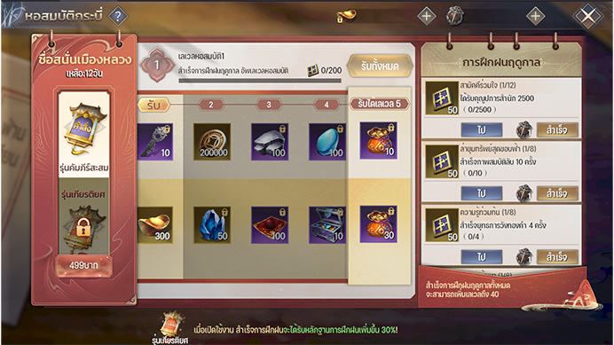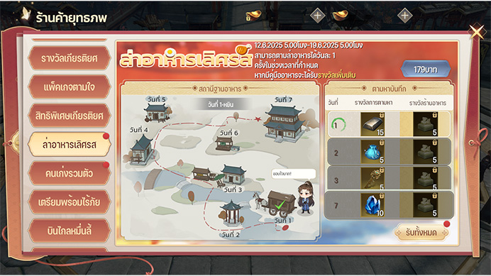 กิจกรรมเช็คอินเข้าเล่นเกมทุกวัน 7 วัน ได้รับไอเทมหลากหลายไม่ซ้ำ และเมื่อซื้อเพิ่ม 179 บาท จะได้รับได้รับไอเทมหลากหลาย ไฮไลท์ไอเทม ตรามังกรวารี