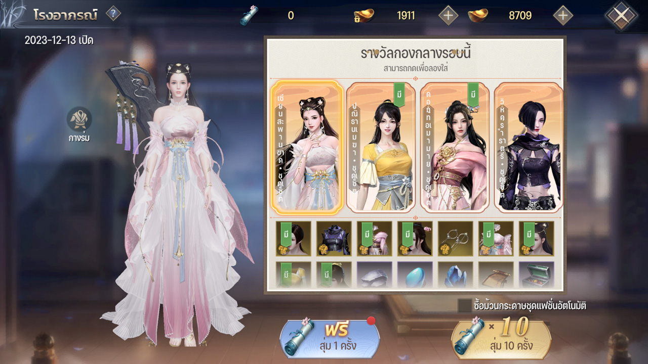 - กาชาปองลุ้นคอสตูม เข้าไปที่เมนู การค้า > ร้านค้า > โรงอาภรณ์