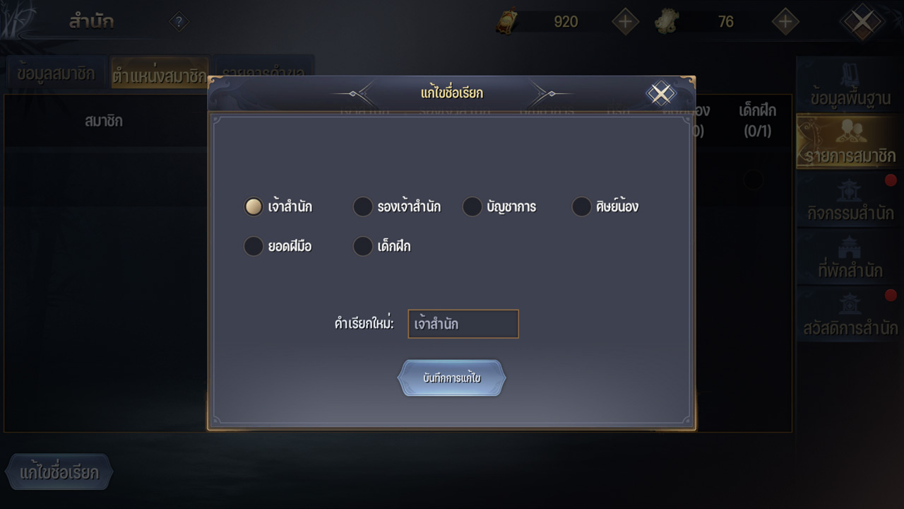 - สามารถสาบานได้สูงสุดทั้งหมด 5 คน โดยหลังจากสาบานเป็นพี่น้องกันเสร็จสิ้น ผู้เล่นจะเปิดระบบพี่น้อง