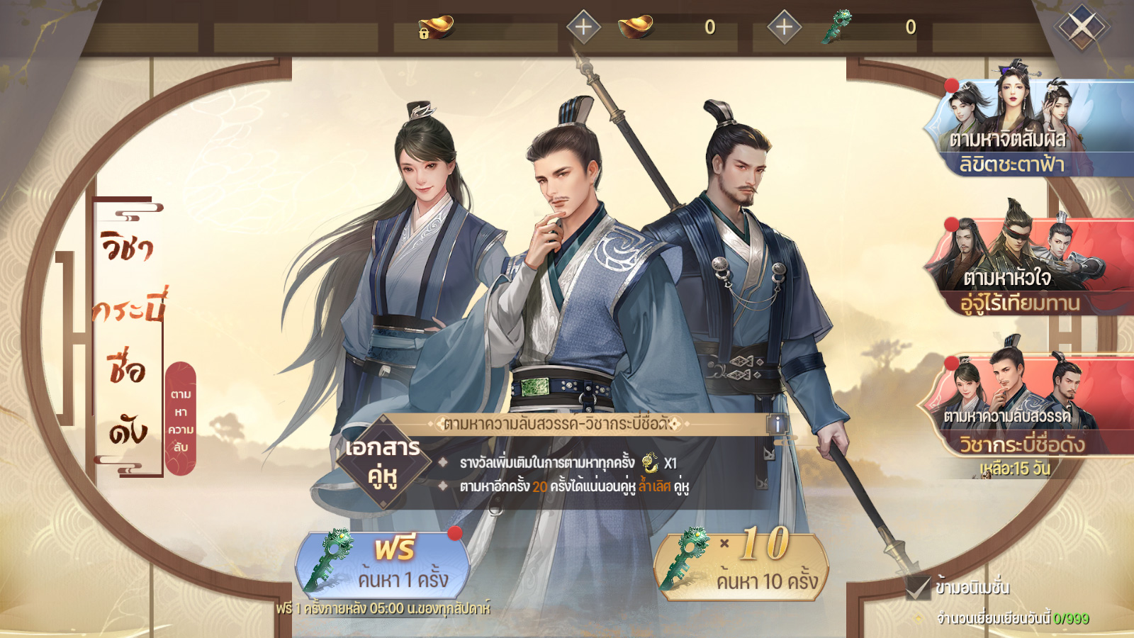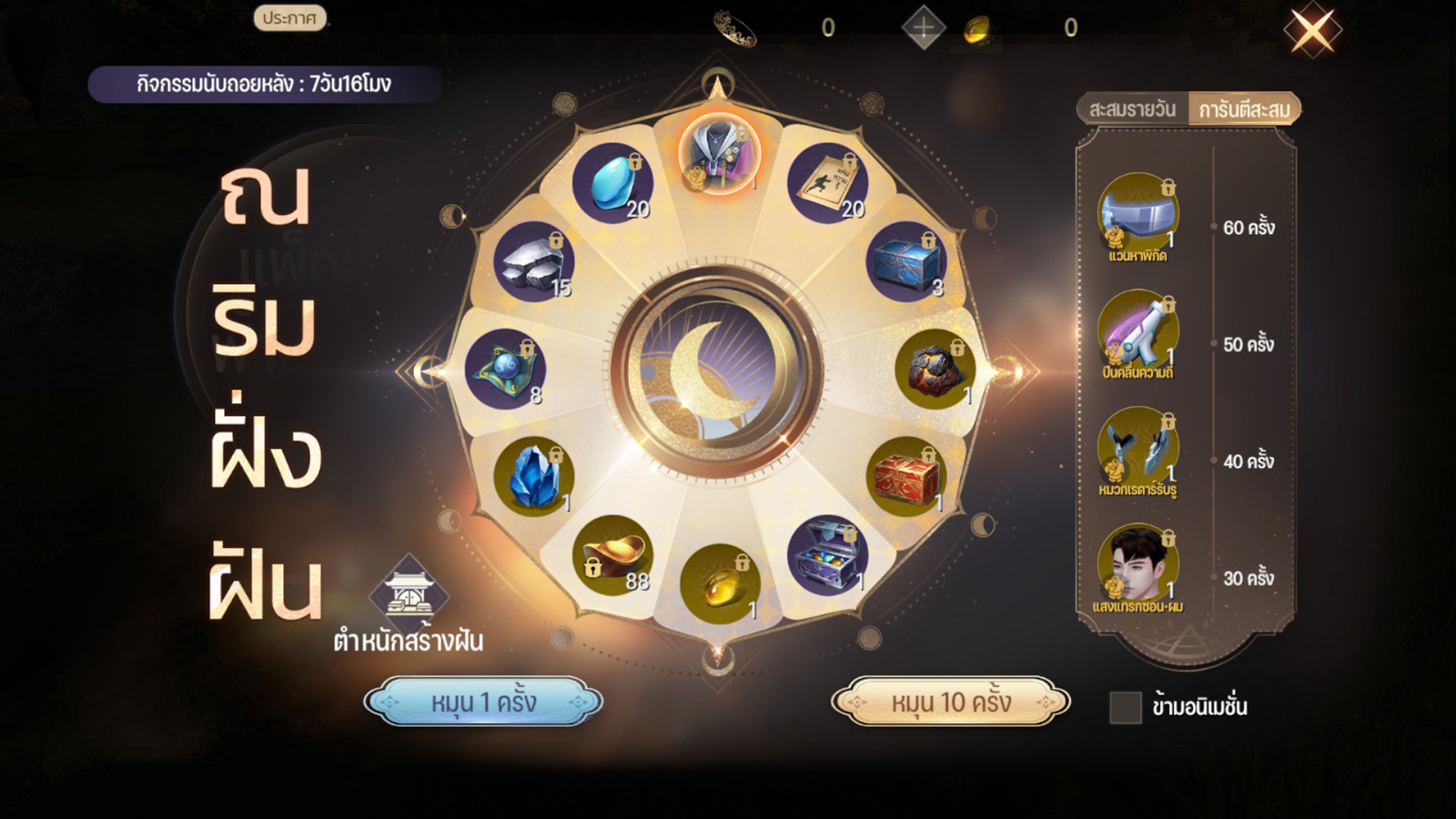 ไฮไลท์ไอเทม "กระดุมทอง" สำหรับใช้ในกิจกรรม ณ ริมฝั่งฝัน และ "กุญแจใจเดียวกัน" เพื่อสุ่มรับคู่หูใหม่ฮ่องเต้แคว้นชิ่ง