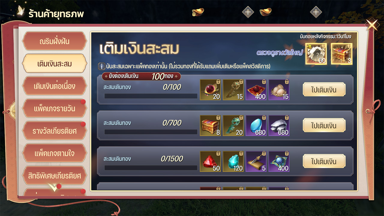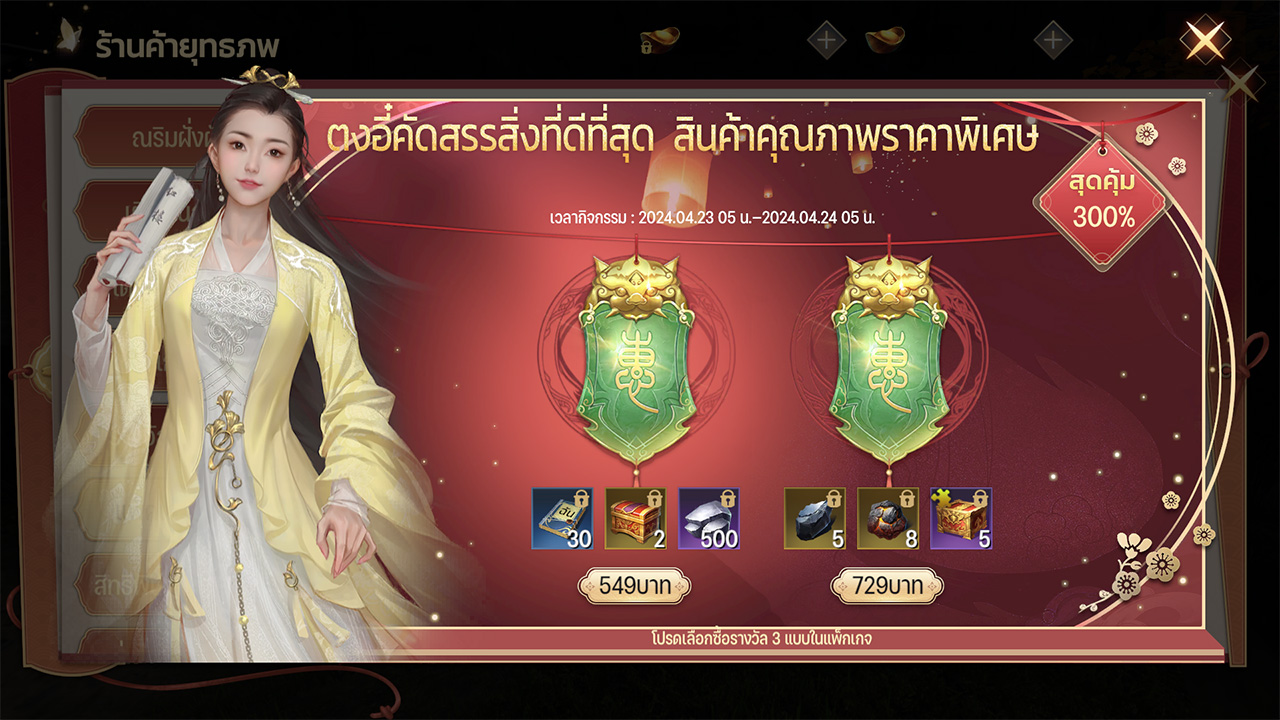แพ็คไอเทมหายากจำกัดการซื้อ ไฮไลท์ไอเทม "ตรามังกรวารี" "ชิ้นส่วนพิเศษวิหารเทพ" และ "ชิ้นส่วนฮ่องเต้แคว้นชิ่ง"