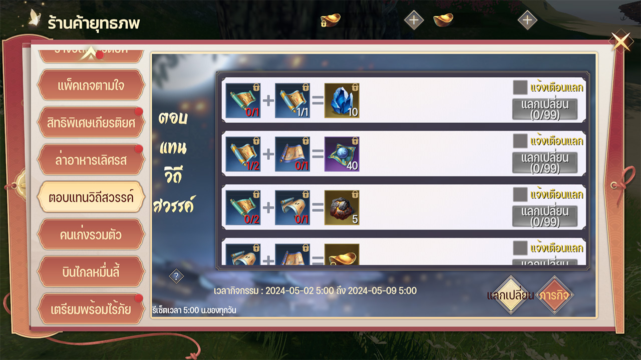 บรรลุภารกิจประลองกิจกรรมต่าง ๆ รับไอเทม "ม้วนภาพ" สะสมให้ครบเพื่อแลกเป็นไอเทมที่ต้องการ ไฮไลท์ไอเทม "แพ็คอวยพรนภาแดง" และ "หยกวิเศษชีพจรฟ้า"