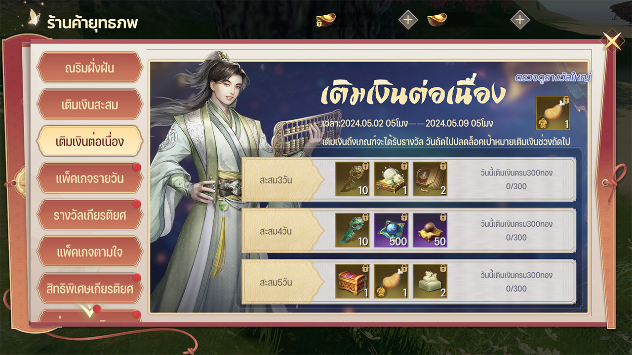 แพ็คเกจที่ท่านสามารถจัดสรรไอเทมได้เอง ไฮไลท์ไอเทม หนังสือภาพระดับสีฟ้า, หยกวิเศษชีพจรฟ้า และ เหล็กกล้า