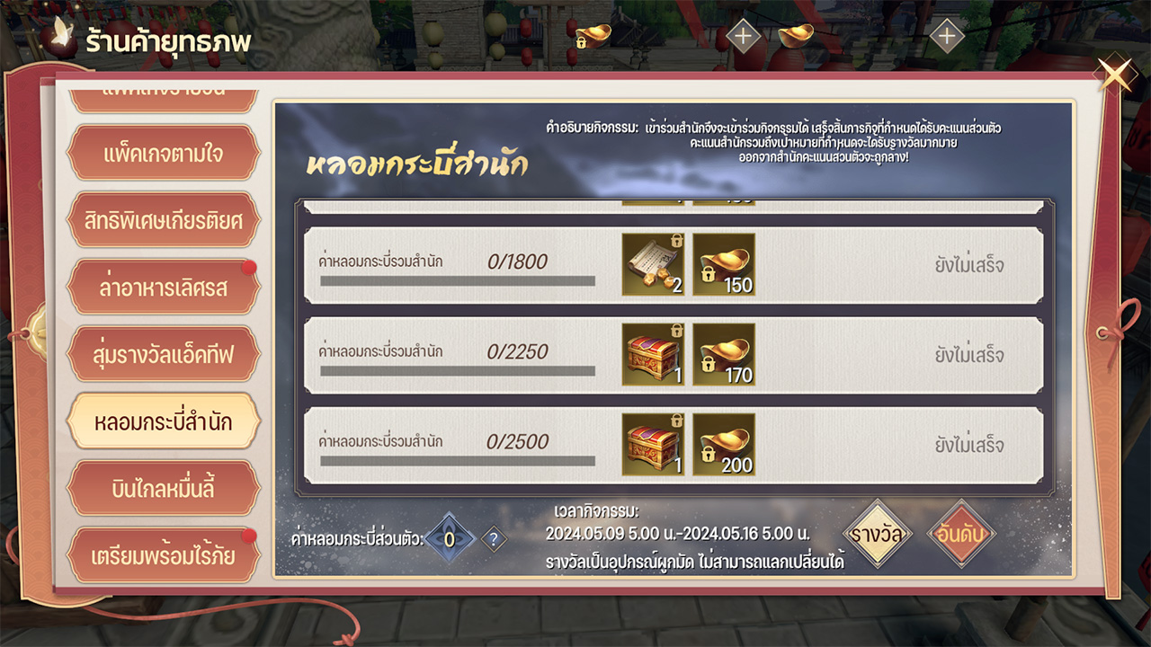 ทำภารกิจสำนักอย่างสม่ำเสมอ ก็จะได้รับรางวัลตอบแทน ไฮไลท์ไอเทม คำสั่งลับทหารองครักษ์, ภาพหลอมสร้างขั้นสูง และ แพ็ควัตถุดิบนภาแดงแบบเลือกเอง
