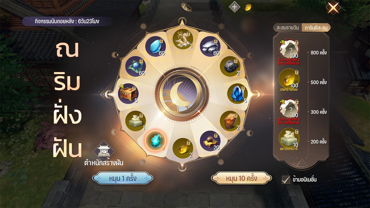 กิจกรรมหมุนกงล้อรอบใหม่ ไฮไลท์ไอเทม "พาหนะ - ราชันย์สูงสุด" และไอเทมการันตีอื่น ๆ มากมาย เช่น เศษทรายทอง, ชิ้นส่วนคู่หูแดง 3 ตัว แบบเลือกเอง #2 (สามารถเลือกชิ้นส่วน เสี่ยวเยว่จื่อ / ผู้แก้แค้นเฉินผิงผิง / นักประพันธ์ฟ่านเสียน)
