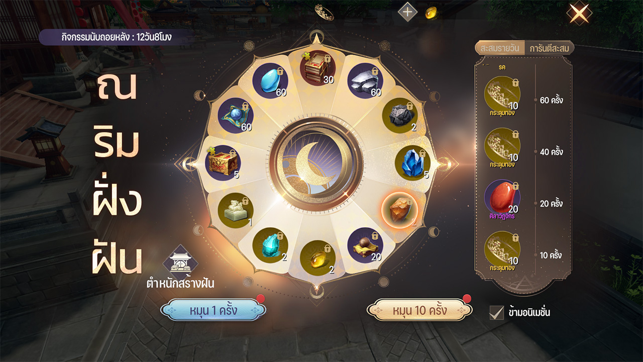 - หมุนสะสมครบ 800 ครั้งในช่วงกิจกรรม ได้รับ แฟชั่น แพรจิตมังกร