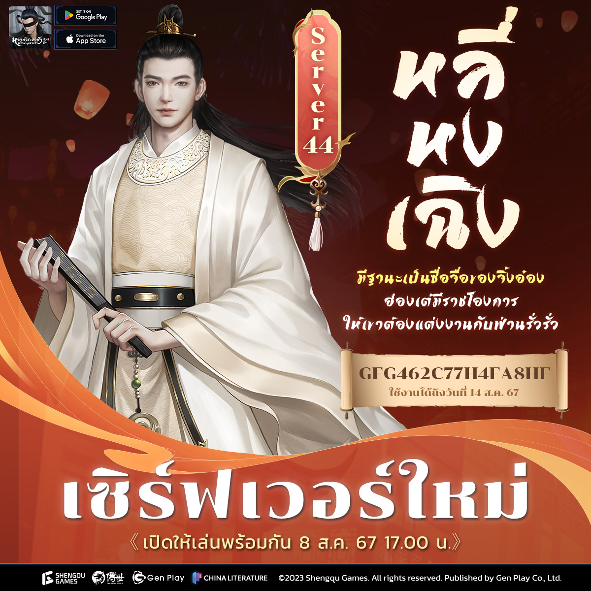 - เซิร์ฟเวอร์ใหม่ S44 - หลี่หงเฉิง เล่นพร้อมกัน 8 ส.ค. 67 เวลา 17.00 น.