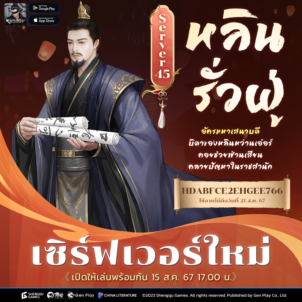 - เซิร์ฟเวอร์ใหม่ S45 - หลินรั่วฝู่ เล่นพร้อมกัน 15 ส.ค. 67 เวลา 17.00 น.