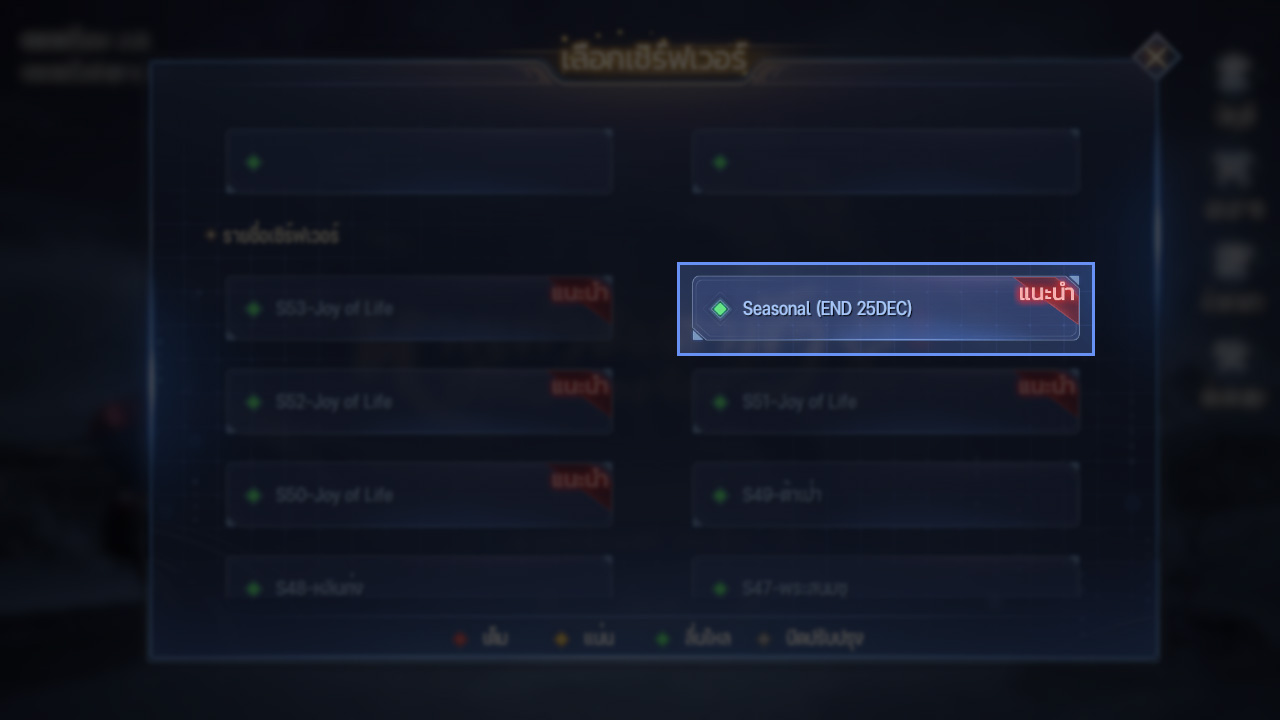 - เมื่อถึงเวลากิจกรรม 25 พ.ย. 67 (17.00 น.) เซิร์ฟเวอร์กิจกรรมจะเปิดให้เข้าเล่น โดยใช้ชื่อว่า "Seasonal (END 25DEC)"